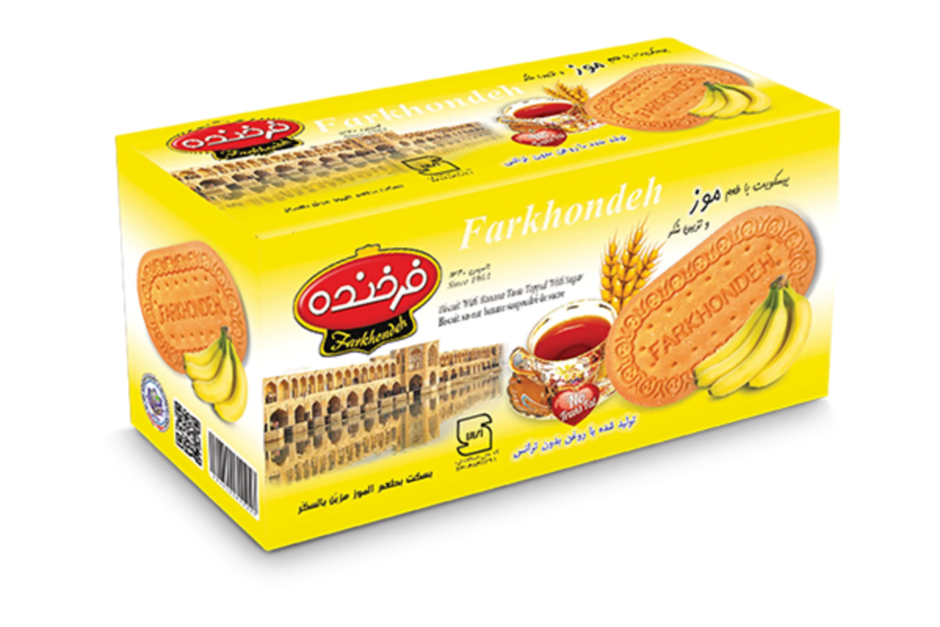 بیسکویت موزی 1000 فرخنده با قالب زبان از بیسکویتهای اصیل و خوشمزه این شرکت است. ظاهر و بسته بندی بیسکویت 1000 فرخنده برای همراهان همیشگی و طرفداران پروپا قرص این برند، بیشتر از سایر محصولات فرخنده شناخته شده است. پیشنهاد میکنیم از این بیسکویت به عنوان یک میانوعده مقوی در خانه و محل کار و یا برای پذیرایی از مهمانانتان استفاده کنید.