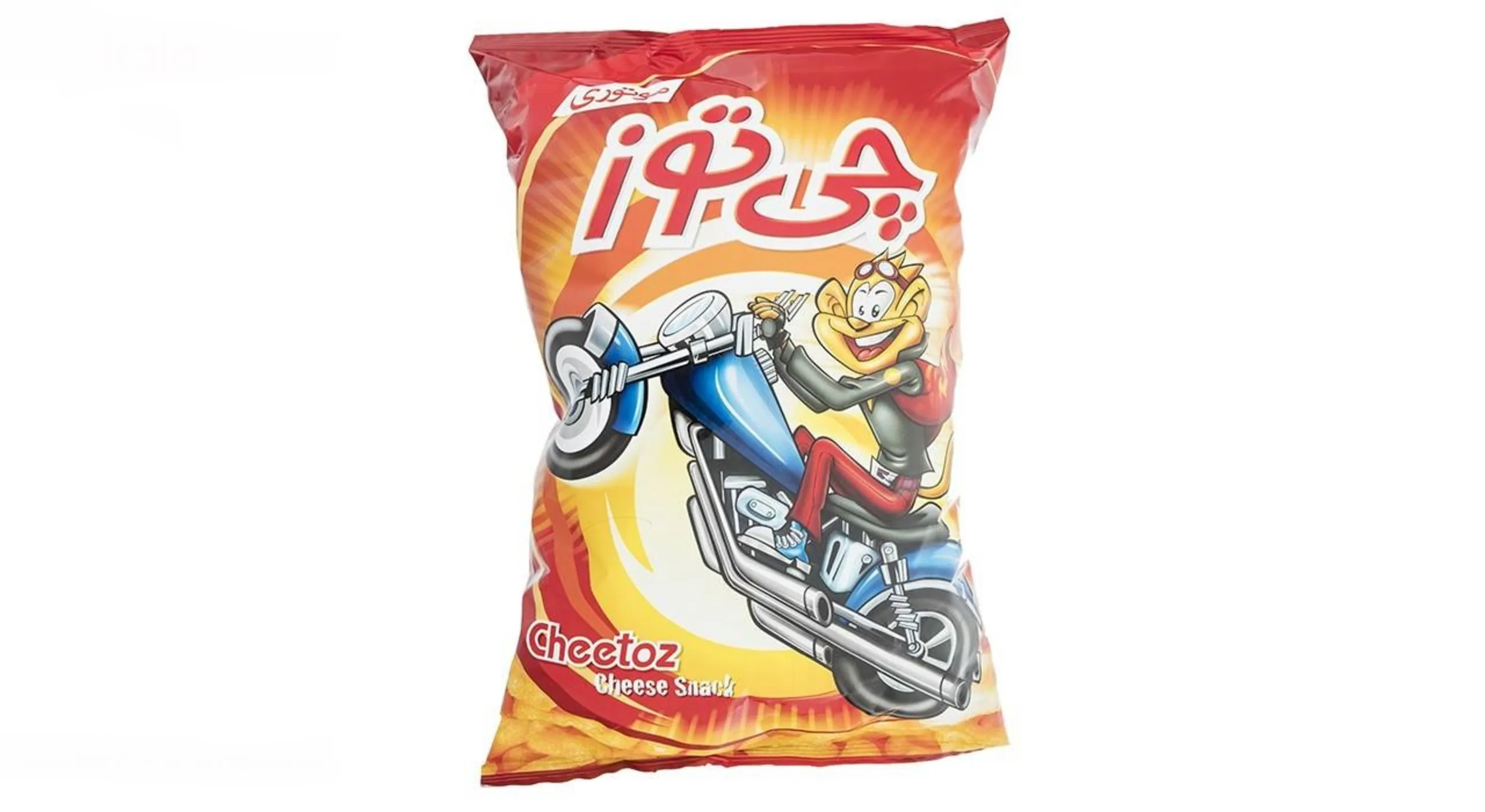 «اسنک موتوری چیتوز» یکی دیگر از محصولات گروه صنعتی «دینا» ست که با تصویر میمون خوشحال و معروف سوار بر موتور معرفی شد و با نام چیتوز موتوری بر سر زبانها افتاد. چیتوز علاوهبر اسنک موتوری اسنک چرخی، توپی، پنیری، طلایی، حلقهای، جنگلی و... را هم تولید کرده و میتوان گفت در این تنوع محصول بیرقیب است. محتویات اسنک موتوری چیتوز یا چیتوز موتوری همان پفک است که هر کدام حجم نسبتا زیادی دارد و نسبت به چیتوز طلایی تردتر هستند. این محصول چیتوز در بستهای قرمز و نارنجیرنگ به ابعاد 40 × 31 × 10 سانتیمتر به بازار عرضه شده است. اسنک موتوری فاقد اسیدهای چرب و قندهای مضر برای سلامتی است؛ بااینحال تاکید میشود که این محصول جایگزین غذای اصلی نیست. در هر 30 گرم از آن 0.42 گرم نمک و 7.5 گرم چربی وجود دارد. میتوان گفت با مصرف یک بسته از این اسنک حدود 65 گرم چربی به بدن شما وارد میشود.