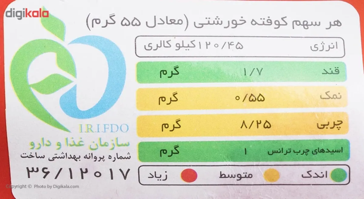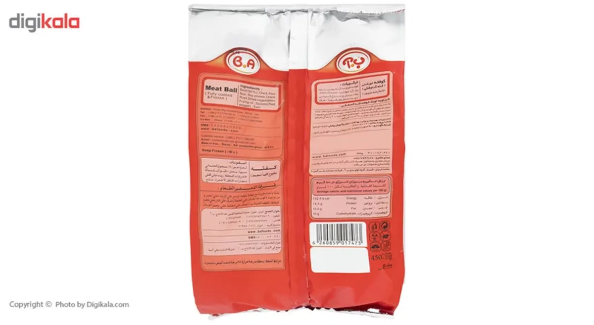 بررسی تخصصیوزن450 گرموزن بستهبندی460 گرمابعاد بستهبندی21.5 × 11 × 15.5 سانتیمترشماره پروانه بهداشت36/12017غذای منجمدکوفته گوشت